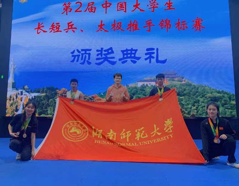 2023年4月14日至4月19日,第二届中国大学生长短兵、太极推手锦标赛在湖北省安陆市孝感弘极体育艺术学校举行。本次比赛湖南师范大学长短兵队派出4名运动员参加比赛,经过五天的激烈角逐,最终斩获两金三银两铜一个第五名,并获得“体育道德风尚奖”,教练谭腾飞荣获“优秀教练员奖”,队员方超兵、谢芊芊、侯鹏、李钦海荣获“体育道德风尚奖运动员”。