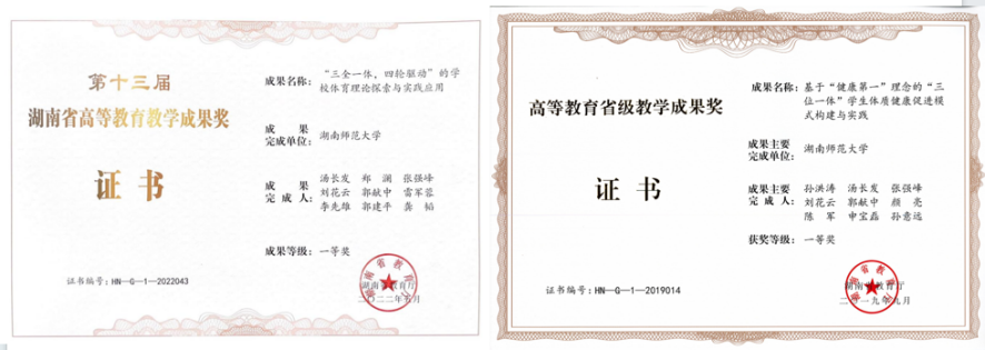 坚持以学生为中心,积极探索教育教学模式。构建“五重型阶梯式”专业人才培养模式,通过课程教学改革、实践教学改革、运动竞赛促进三个维度,形成了贯通培养目标、培养模式、过程监控、培养结果等人才培养全过程的质量保障体系。“基于‘健康第一’理念的‘三位一体’学生体质健康促进模式构建与实践”(2019年)、“‘三全一体,四轮驱动’的学校体育理论探索与实践应用”(2022年)等教育教学成果分别获得省级教育教学成果“一等奖”。获批立项省级以上教研教改课题16项。