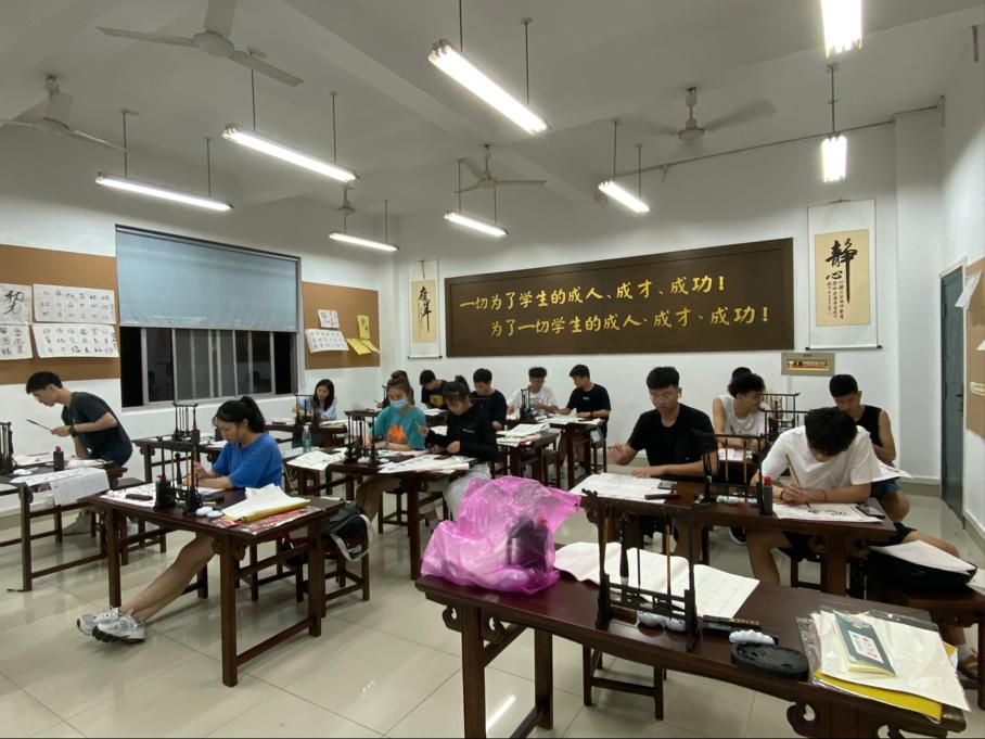 晚操时,毛笔和粉笔字的练习,需要队员专注的练习手中的一笔一划。尽管处于练习起始阶段,队员们对此较为生疏,但通过队员们的勤奋苦练,笔法的都得到了较大的改善。
