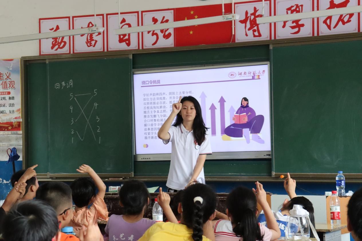 (通讯员 夏悦淇 蒋盼盼 张馨怡)7月6日,我校bwin必赢中国官网“致知力行”暑期实践团在湖南省邵阳县五峰铺镇为青云中学开展“学习语音发声 体会朗诵魅力”特色活动。将名家名篇带入课堂,通过教学发声技巧和朗诵感情,培养学生的听、说、读、写能力,增强学生的社会交际能力和语言表达能力,让学生在听觉上体会朗诵的情感澎湃,在内涵上领悟中华传统文化之美。