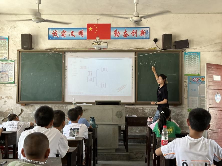 高沙镇中心小学四至六年级的学生们跟着老师认真学习了英语国际音标。国际音标可以解决英语发音的难题,避免哑巴英语出现在乡镇学生的学习中,增强学生对学习英语学科的信心。