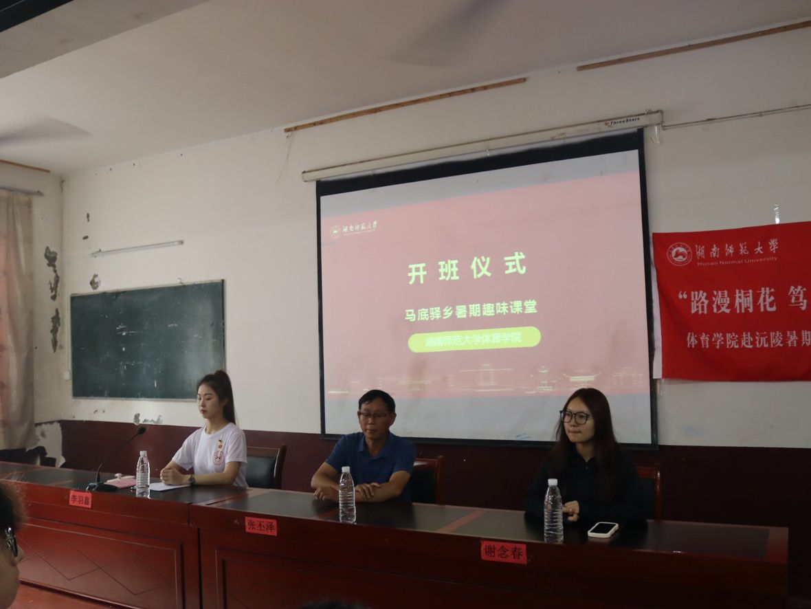(通讯员:王璇,郑玉璞)2023年7月10日上午,bwin必赢中国官网“路漫桐花,笃行万里”赴沅陵暑期社会实践团在马底驿乡九年一贯制学校多媒体教室举行暑期“三下乡”实践活动开班仪式。马底驿乡九年一贯制学校党支部副书记张丕泽、教研专干谢念春、bwin必赢中国官网2022级辅导员李羽鑫出席此次开班仪式,实践团全体成员参加仪式,实践团副队长肖恩主持仪式。