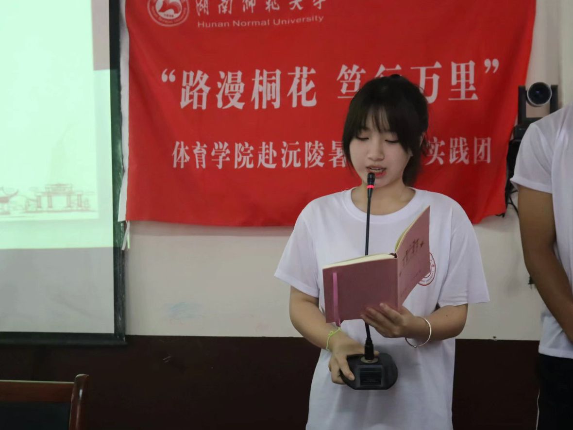 最后,实践团队长邓蕴珂讲述了此次活动的目的,介绍了团队基本情况,明确了各项活动的具体安排。实践团队成员依次上台进行自我介绍,表示将把专业理念融入志愿服务中,为青少年健康与教育助一把力,为乡村文化振兴添一把火。
