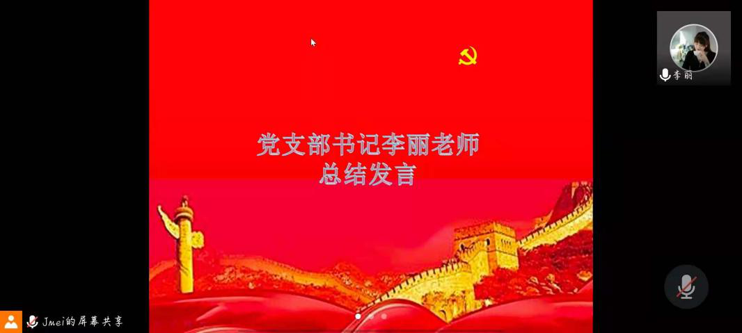 此次会议主要内容为李丽述职、支部成员感悟分享及党支部书记总结。会议伊始,李丽谈了她刚入党时的初心,并表示入党二十几年来,秉承着为人民服务的初心,坚守在教师岗位中,为广大学生服务。