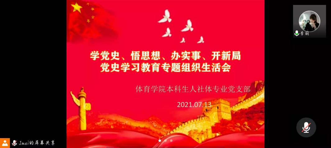 (通讯员 彭美 蒋妹)2021年7月13日上午,我院本科生运动人体科学、社会体育指导与管理专业本科生党支部在腾讯会议召开学党史、悟思想、办实事、开新局党史学习教育专题组织生活会。出席本次会议的有党支部书记李丽以及全体支部成员,本次会议由党员蒋妹主持。