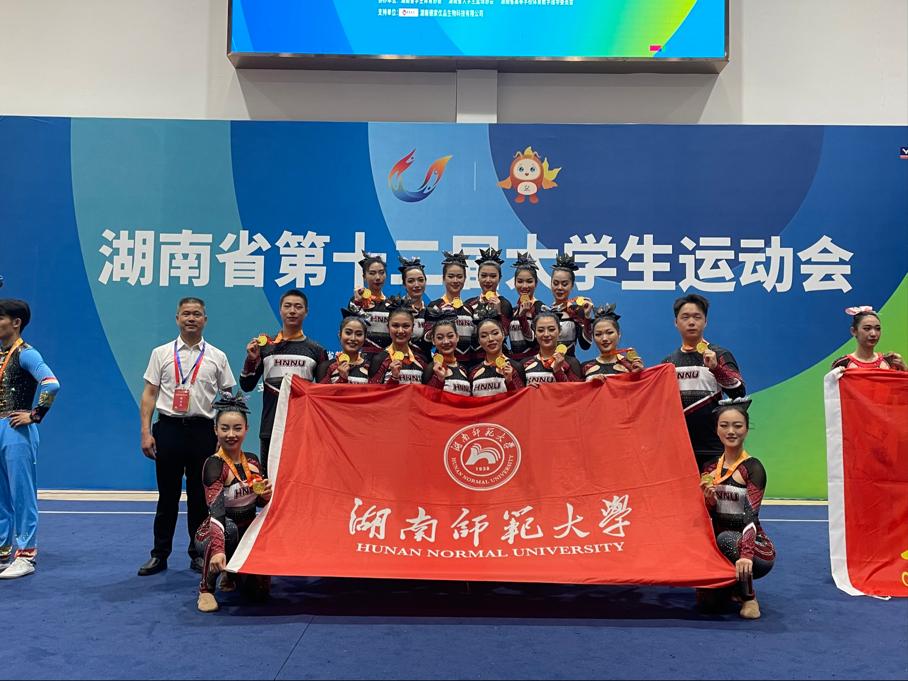 2022年9月7日至9月11日,湖南省第十二届大学生运动会啦啦操比赛在湖南理工学院落下帷幕,我校在此项比赛中斩获三金一银,团体总分第一名的优异成绩。