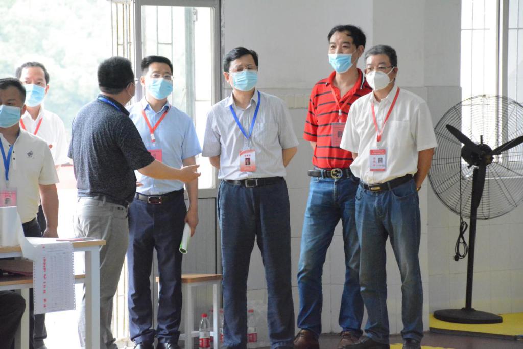 唐未兵、刘起军一行深入考试工作现场,逐一视察篮球场、监控室、武术馆、田径场等考点,查看学院防疫部署、设备运行、考务管理、考生考试、考场设施等情况,详细听取了相关负责人对本次体育高考工作的汇报。