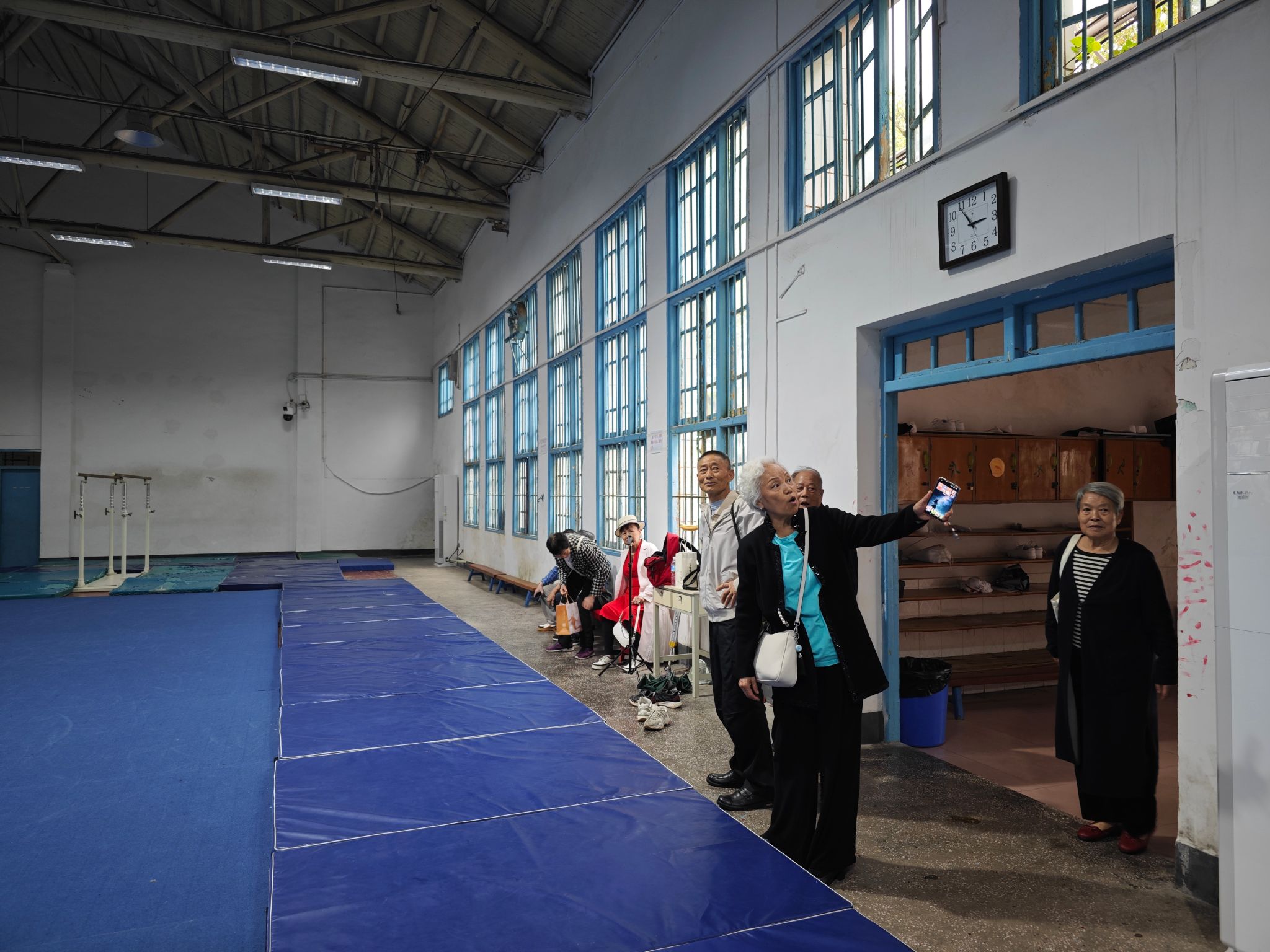 在教学楼合影留念之后,学院党委书记李波等教职工代表陪同校友们参观了院史馆、田径场、老体育馆等校园场馆。校友们对院史编纂、场馆建设等工作提出了一些宝贵建议。