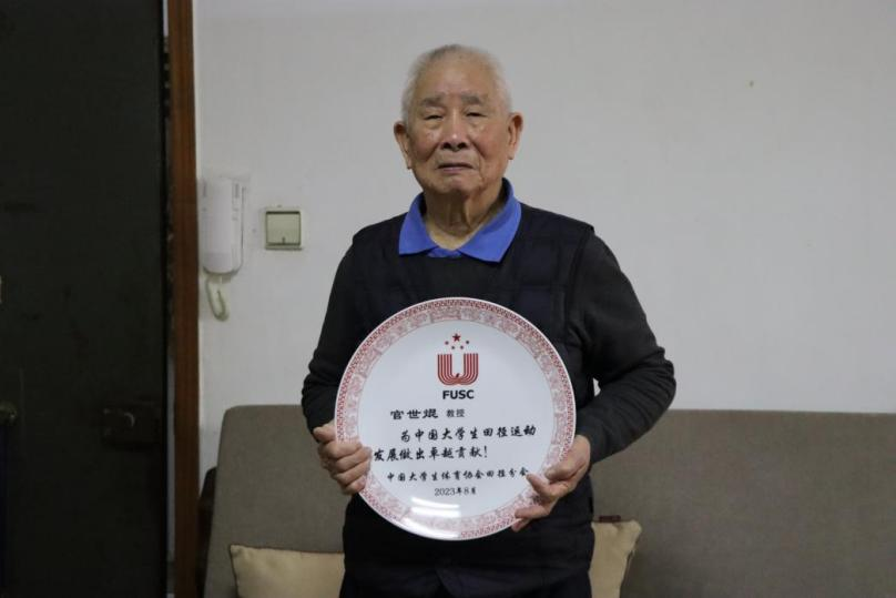 11月26日,我院副院长郭献中与原湖南师范大学体育教学部部长孙洪涛教授受中国大学生体育协会田径分会委托,一同前往bwin必赢中国官网老教授官世焜家中为其颁奖,本奖项全国仅八位专家获得。